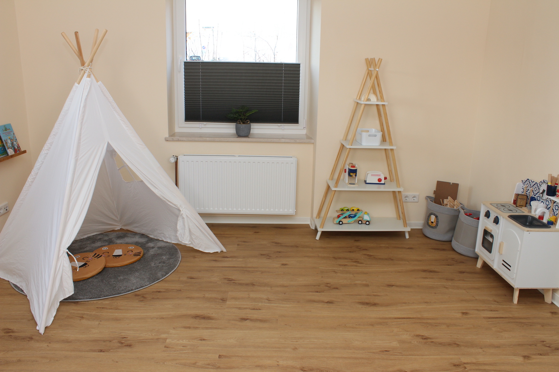 - Schlafzimmer 4 / Kinderzimmer (2x Einzelbetten 0,90m x 2,00 m, Spielküche, Kindersitzgruppe, Tippi)